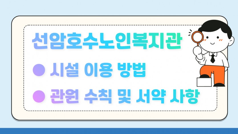 선암호수노인복지관 '시설이용방법, 관원수칙 및 서약 사항' 영상입니다.^^