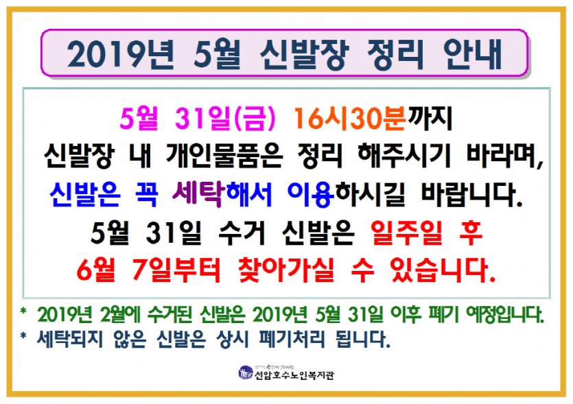 2019년 5월 신발장 정리 안내 [2019-05-28]
