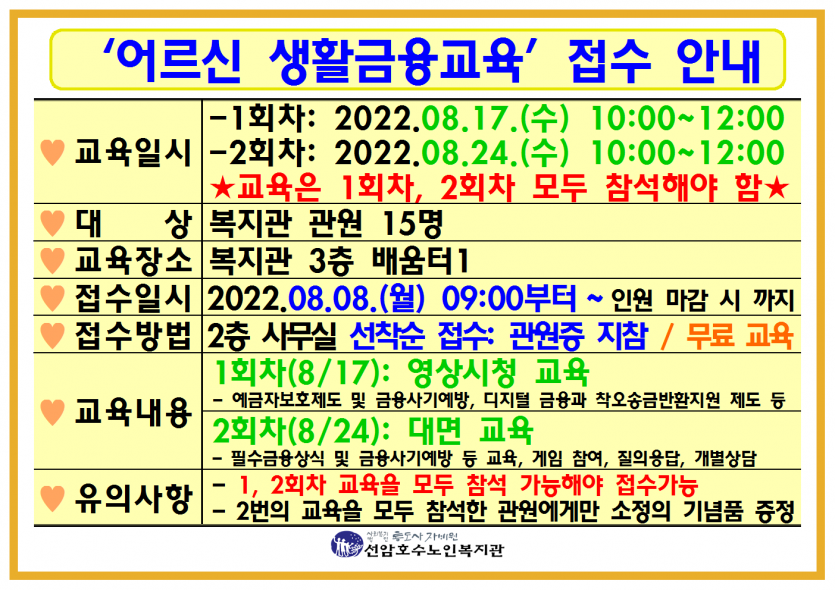 특강(어르신 생활금융교육) 접수 페이지 정보 작성자 관리자 댓글 0건 조회Hit 1,076회 작성일Date 22-07-27 11:48 본문 특강(어르신 생활금융교육) 접수 목록 댓글목록 댓글목록 등록된 댓글이 없습니다.