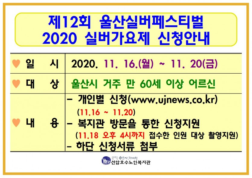 제12회 울산실버페스티벌-2020 실버가요제 신청안내