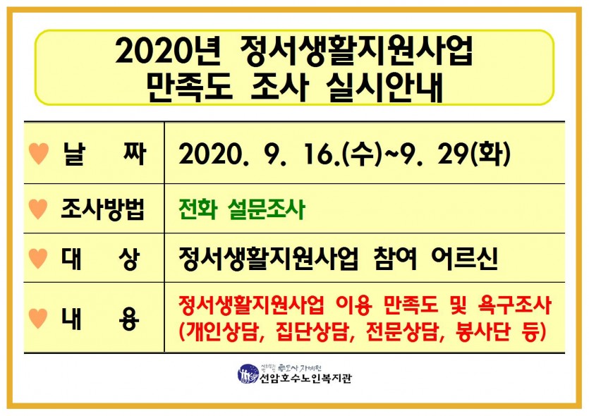 2020년 정서생활지원사업 및 건강생활지원사업 만족도 및 욕구 조사 실시안내