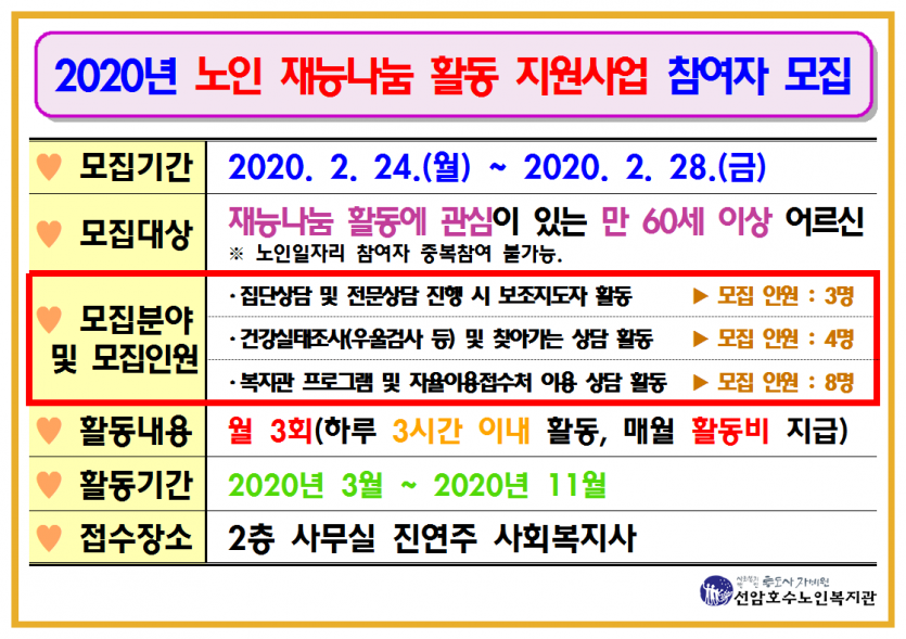 [접수일정 추후공지]-2020년 노인 재능나눔 활동 지원사업 참여자 모집 안내