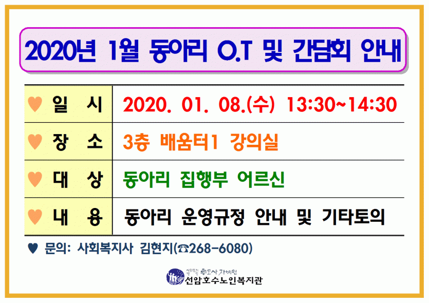 2020년 1월 동아리 오리엔테이션 및 간담회 안내 페이지 정보 작성자 관리자 댓글 0건 조회Hit 653회 작성일Date 20-01-08 09:10 본문 2020년 1월 동아리 오리엔테이션 및 간담회 안내 목록 댓글목록 댓글목록 등록된 댓글이 없습니다.