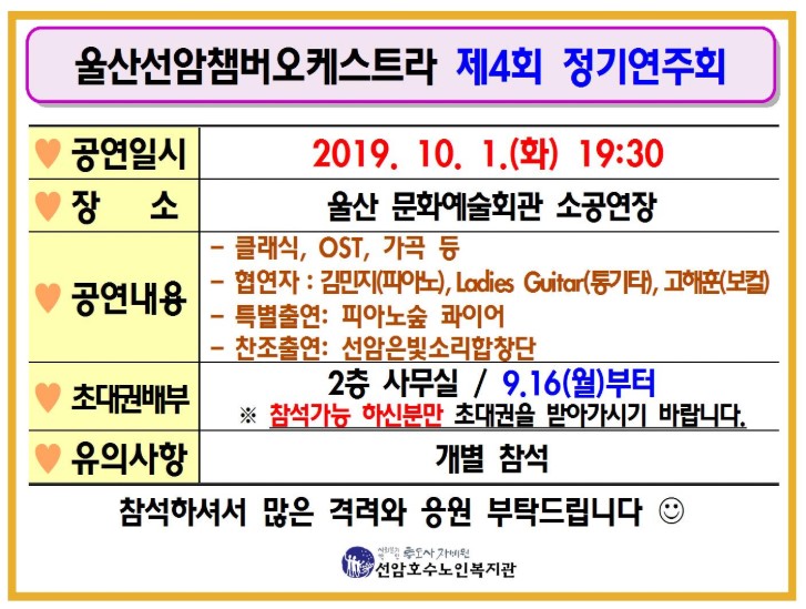 울산선암챔버오케스트라 제4회 정기연주회 안내 [2019-09-11]