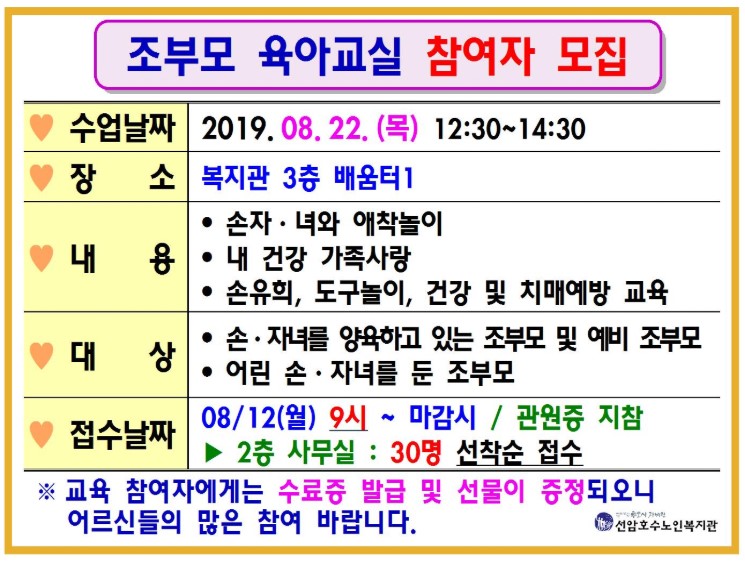 조부모 육아교실 참여자 모집 [2019-08-06]