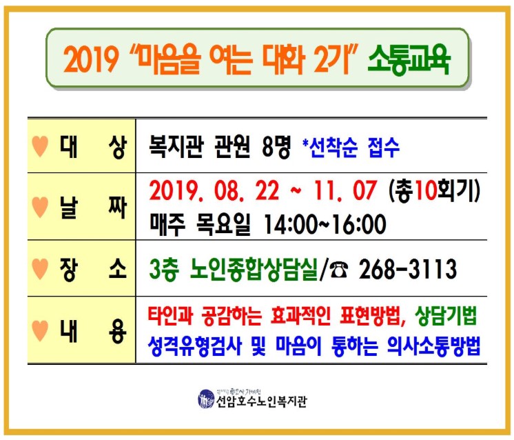 2019년 마음을 여는 대화 2기 모집안내 [2019-08-14]
