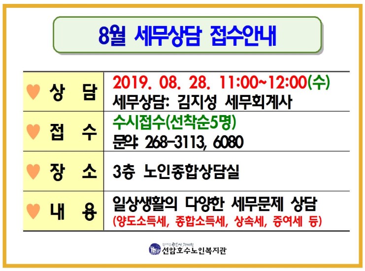 2019년 8월 무료 세무상담 접수안내 [2019-08-20]
