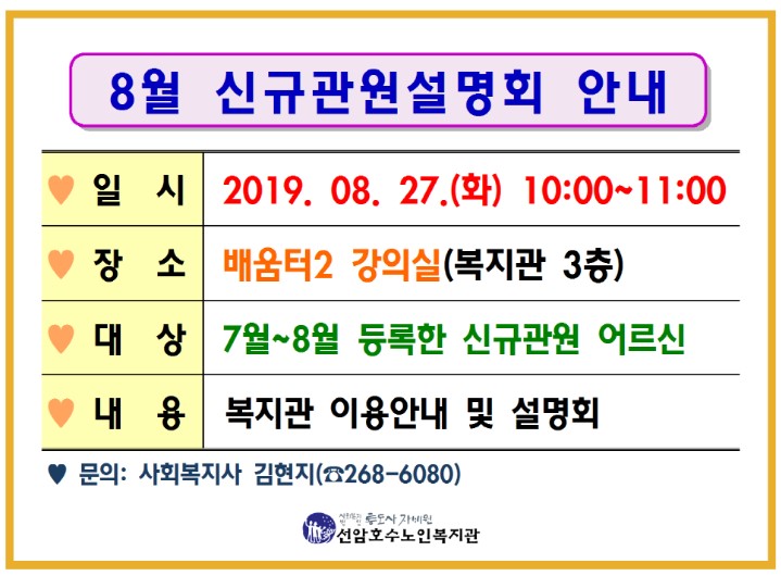 2019년 8월 신규관원설명회 안내 [2019-08-22]
