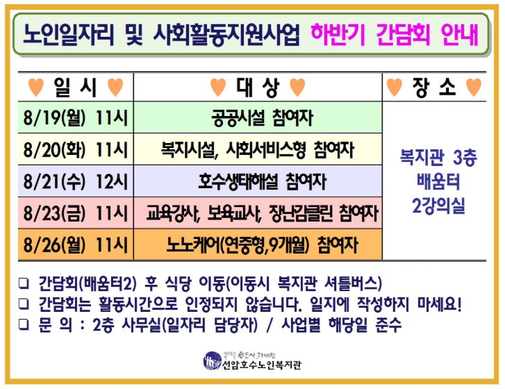 노인일자리 및 사회활동지원사업 하반기 간담회 안내 [2019-08-02]