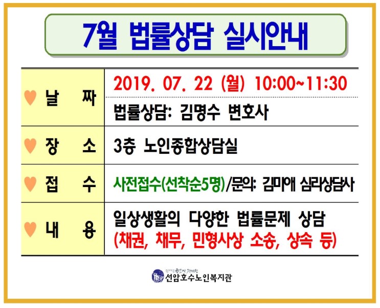 2019년 7월 무료 법률상담 실시안내 [2019-07-18]