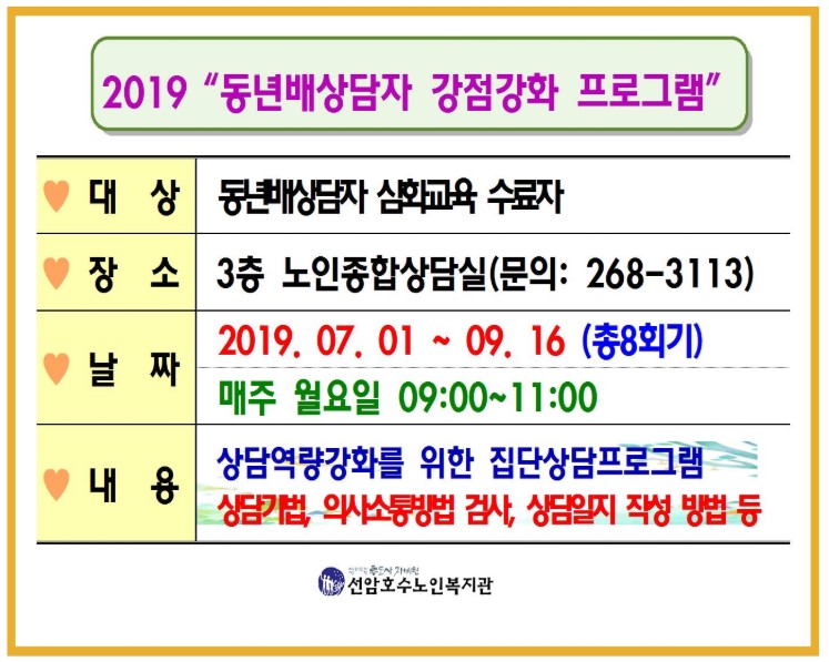 2019년 동년배상담자 "강점강화 프로그램" 실시안내 [2019-06-24]