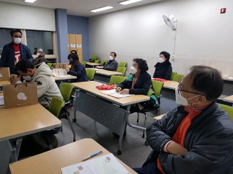 2020.12.09.(수) 복지관 3층 배움터 2에서 2020년 금빛부부봉사단 평가회를 진행하였습니다. 금빛부부봉사단은 2021년 활동방향에 대한 논의와 2020년 한 해 동안 활동에 대한 봉사단원들의 의견을 나누는 시간이 되었습니다. 금빛부부봉사단는 활동에 대해 적극적으로 의견을 나누고 소통의 시간을 가짐으로써 봉사단으로서 사명감을 느낄 수 있는 의미있는 시간이 되었습니다. 한 해 동안 열심히 봉사활동을 해 주신 금빛부부봉사단 단원들께 깊이 감사드립니다!!!