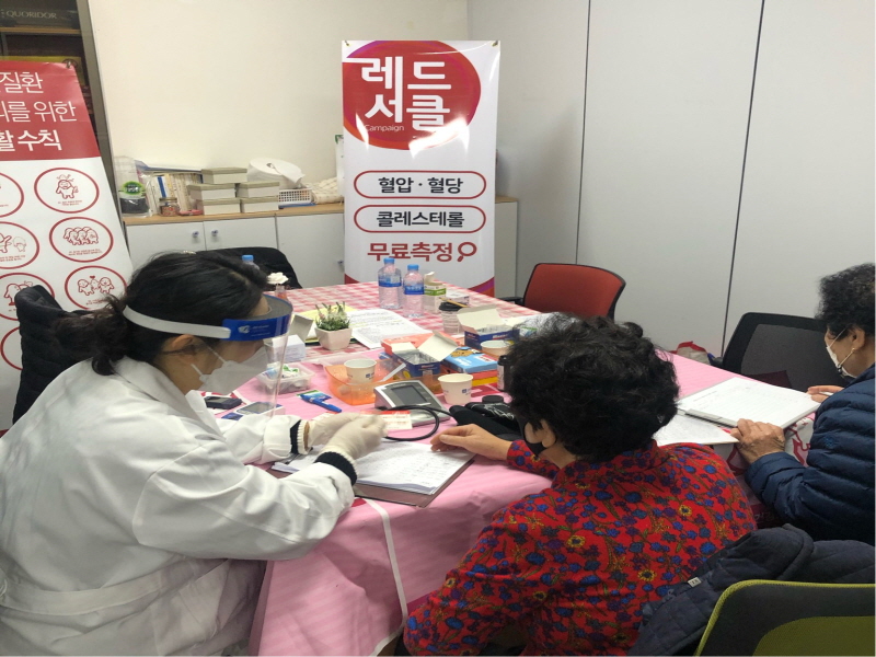 2020년 11월 24일(화) 복지관원 어르신들을 대상으로 3층 강사실에서 무료 건강검진(건강체크)를 실시하였습니다. 이번 건강검진은 심뇌혈관 질환 예방을 위해 '남구보건소'와 연계하여 혈당, 혈압, 콜레스테롤 4종 검사를 진행하였습니다. 참여해주신 관원어르신들의 건강한 노후를 응원합니다.