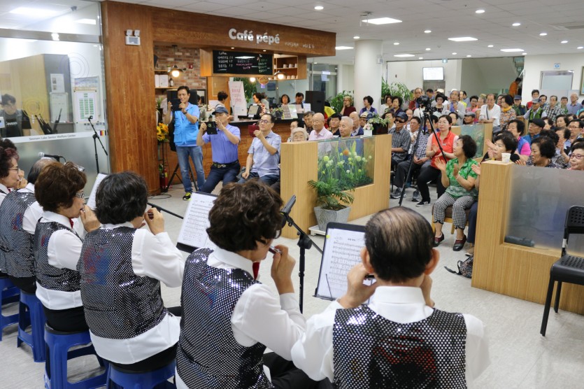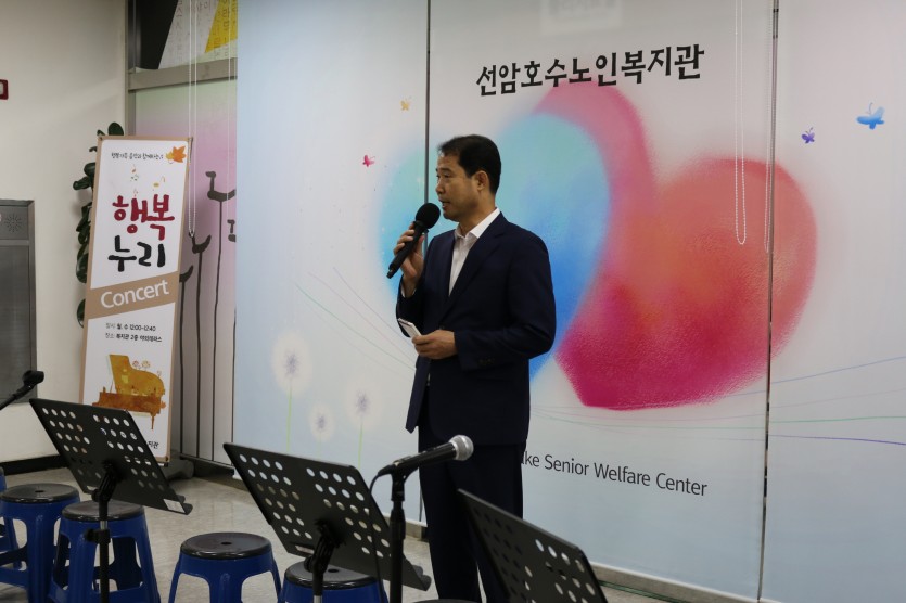 9/2(월) 12:00~12:40, 비가 오는 관계로 선암호수노인복지관 2층 로비에서 첫 번째 가을 행복누리 콘서트가 열렸습니다.