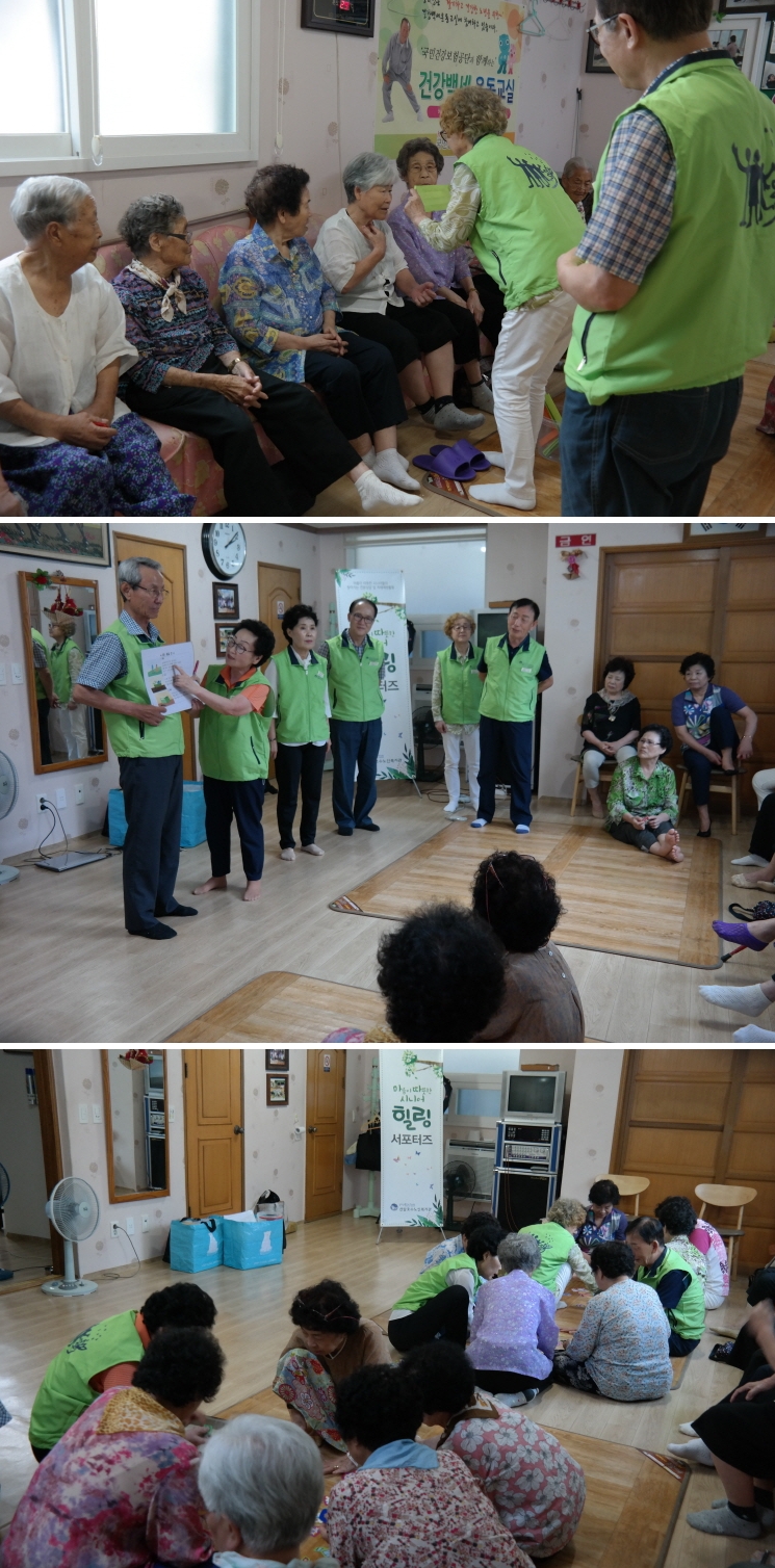 2019.08.14.(수) 마따 시니어 힐링 서포터즈단이 소정경로당으로 찾아가 "힘뇌체조, 넌센스 퀴즈, 치매간이검사, 치매예방수칙3·3·3알리기, 보드게임(힛더햇)"을 하시며 경로당 어르신들을 대상으로 치매예방활동을 진행하는 시간을 가졌습니다.