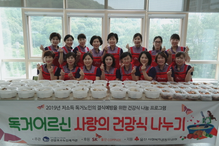2019.07.17.(수) SK울산COMPLEX 후원, 울산사회복지공동모금회 지원으로 울산 남구지역의 저소득 독거노인 106명에게 「저소득 독거노인의 결식예방을 위한 건강식 나눔 프로그램 ‘독거어르신 사랑의 건강식 나누기’」 2회차를 실시했습니다.