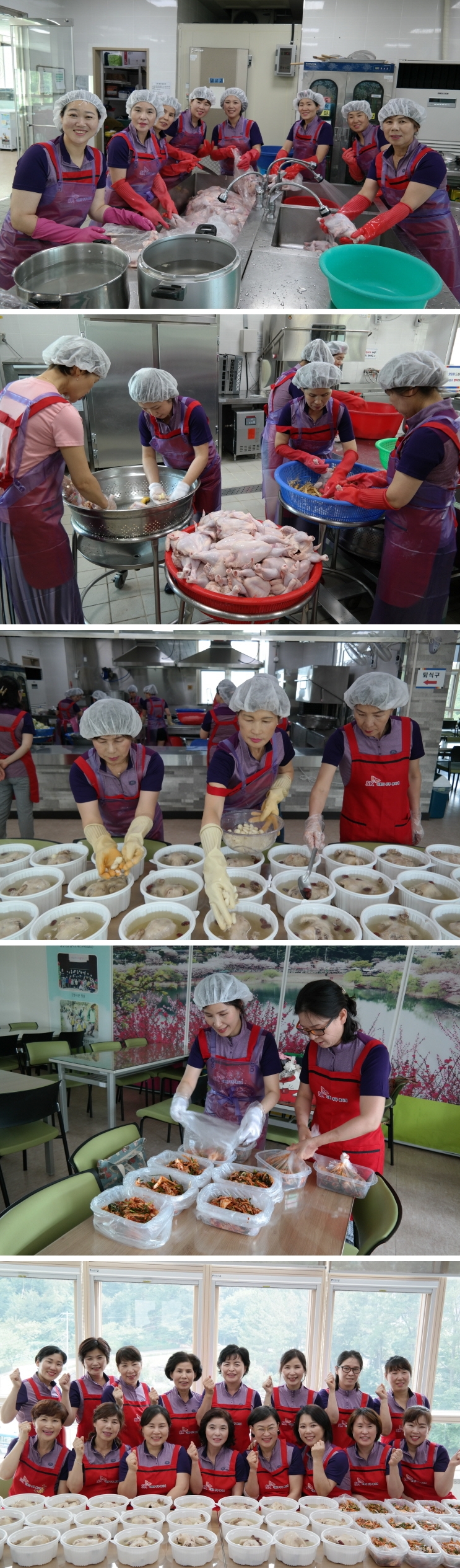 결식의 우려가 있고 경제적으로 어려운 독거노인에게 균형적인 영양섭취 제공과 건강회복을 위해 SK 다물단 주부봉사대가 ‘한방 삼계탕과 배추 겉절이’를 정성껏 조리하였고, 조리 된 음식을 포장해 53명의 생활관리사들이 각 어르신 댁에 방문해 전달했습니다.