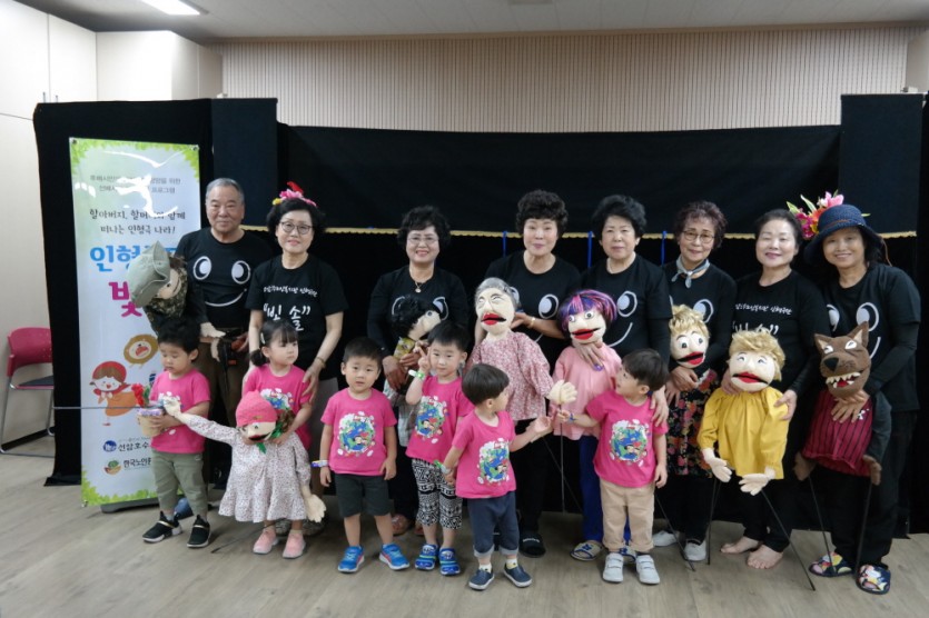 2019년 6월 26일(수) 10:30 선배시민자원봉사프로그램 인형극단 빛솔 이 '남구연합(베베하우스, 꿈동이, 해피, 아이잼)어린이집, 북구연합(오르다, 한울, 보금자리)어린이집' 친구들과 복지관 관원을 대상으로 '유괴예방인형극 - 따라가면 안돼! 빨간모자야' 를 선보였습니다. 앞으로도 문화 복지 향상과 세대통합을 위해 지역사회 어린이집과 사회복지시설에 인형극 재능기부 공연 봉사활동을 펼치는 '빛솔'의 활약을 기대합니다.