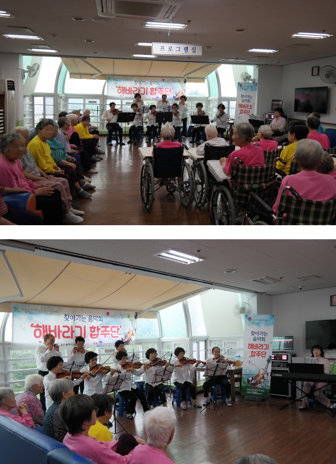2019년 6월 28일(금) 선암호수노인복지관 평생학습동아리 '해바라기합주단'은 지역사회 인식개선과 소외계층의 문화욕구 해소를 위해 하모니카외 다양한 악기를 통한 재능기부 공연을 펼쳤습니다.