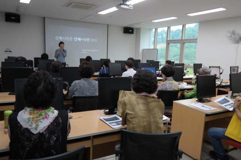 2019. 7.10.(수) 13:00~16:00 선암호수노인복지관 3층 정보화교실에서 후배시민의 성장을 도모하고자 진행된 "2019년 선배시민 자원봉사프로그램 양성교육"을 참여자 30명을 대상으로 "선배시민은 선배+시민이다"를 실시하였습니다.