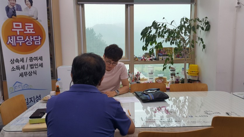 2019년 6월 26일 수요일 3층 노인종합상담실에서 관원 7명을 대상으로 무료 세무 상담을 진행하였습니다. 6월 세무 상담에서는 임대사업자로서 종합소득세, 양도소득세, 상속세, 세금환급, 증여세 등 다양한 세무문제에 대한 상담이 진행되었습니다. 세무사님과 1:1 개별상담을 통하여 복잡한 세무문제를 쉽고 원만하게 해결할 수 있도록 돕고 세무 정보를 제공함으로써 효율적인 자산관리에 많은 도움이 되는 시간이었습니다. 무료로 세무 상담을 진행해주신 김지성 세무사님께 깊이 감사드립니다!!!