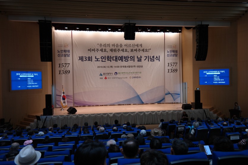 2019.06.13.(목) 14:00~16:00 한국동서발전(주) 대강당에서 6월 15일 법정기념일인 노인학대예방의 날을 맞이하여 노인학대 문제의 경각심 및 사회적 관심을 고취시키고자 실시한 '제3회 노인학대예방의 날 기념행사'에 본 복지관 어르신들이 참석했습니다.
