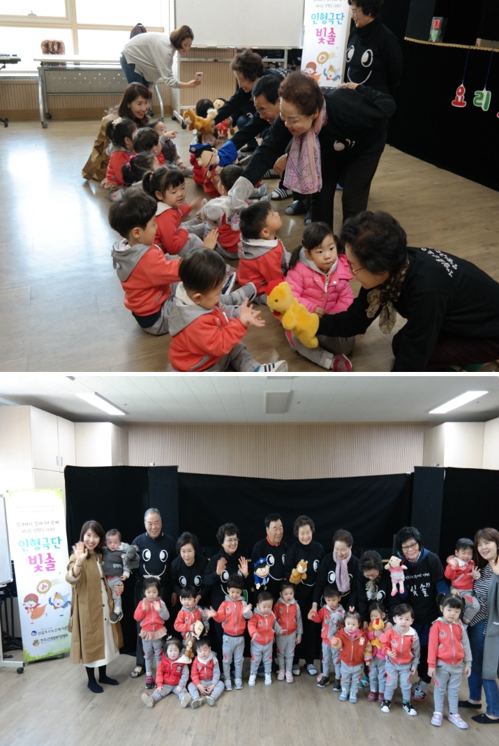 앞으로도 문화 복지 향상과 세대통합을 위해 지역사회 어린이집과 사회복지시설에 인형극 재능기부 공연 봉사활동을 펼치는 '빛솔'의 활약을 기대합니다!