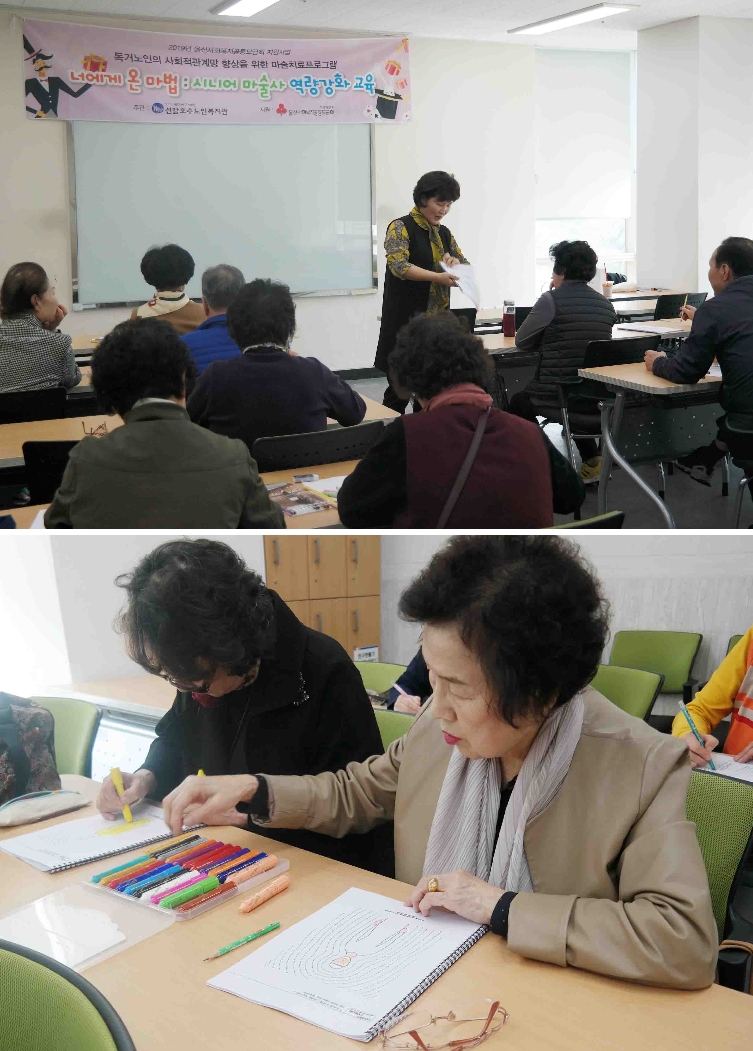 2019년 울산사회복지공동모금회 신청사업으로 독거노인의 사회적 관계망 향상을 위한 마술치료 프로그램「우리에게 찾아온 마법 ‘라라마술단’」의 참여자 15명을 대상으로 3/22(금), 12:50~13:50 복지관 3층 배움터2에서 역량강화 교육을 진행하였습니다.