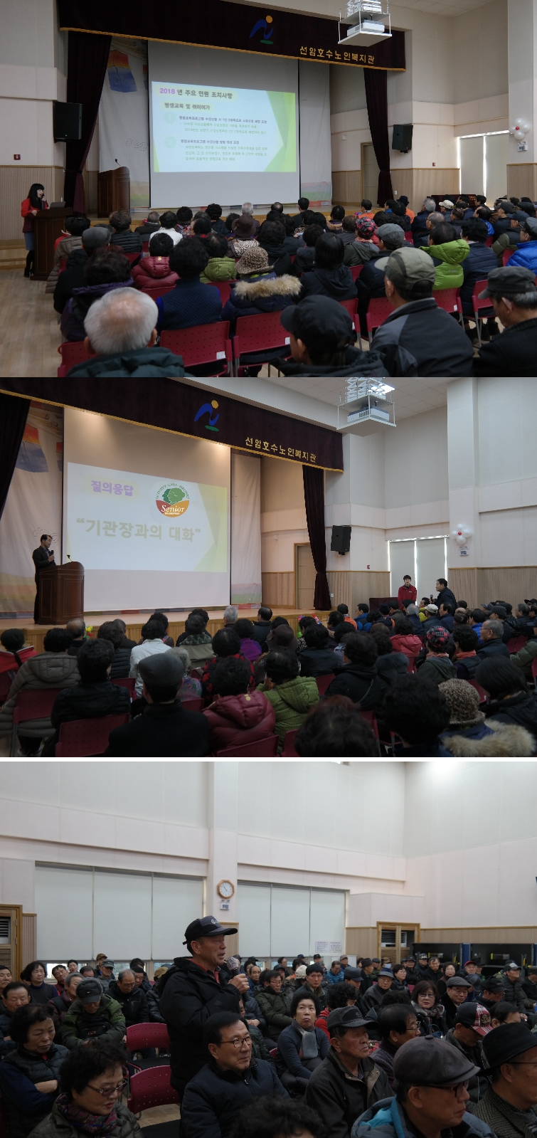 2019. 1. 18.(금) 오전 10시, 복지관 1층 대강당에서 관원 어르신들을 모시고 "2019년 상반기 사업운영설명회"를 실시하였습니다.