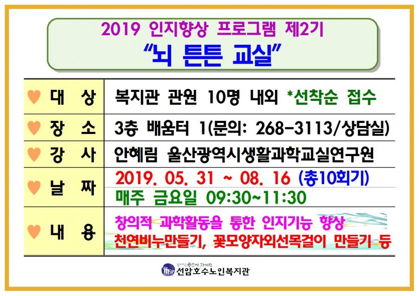 2019년 인지기능향상프로그램 제2기 실시안내 [2019-05-21]
