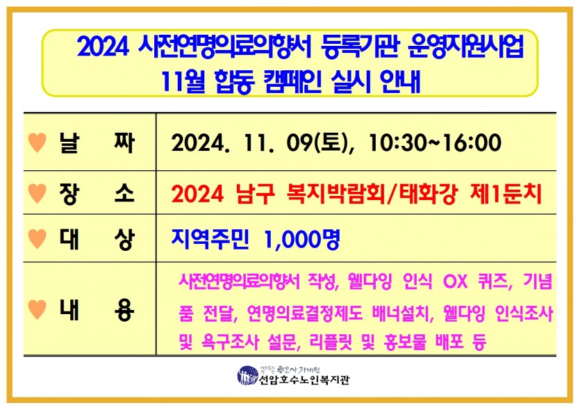 2024년 사전연명의료의향서 등록기관 운영지원사업 11월 합동 캠페인 실시