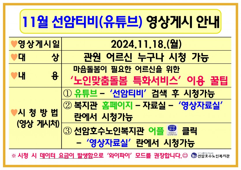 11월 선암티비(유튜브) 영상게시 안내 (시청 바랍니다^^)