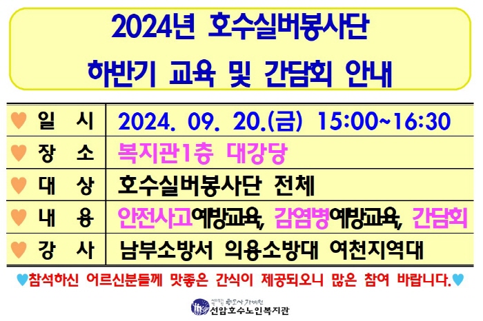 2024년 호수실버봉사단 하반기 교육 및 간담회 안내