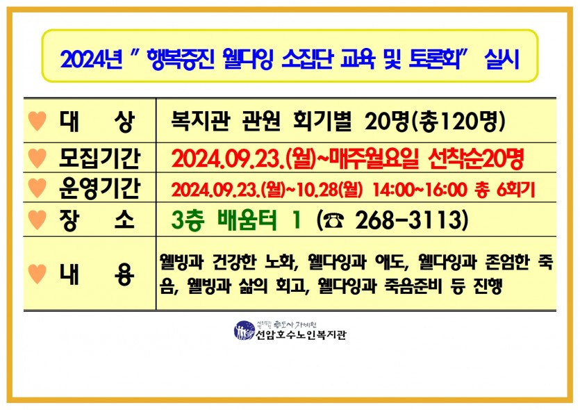 '행복증진 웰다잉 소집단 교육 및 토론회' 안내