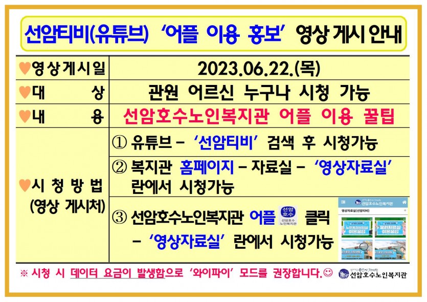 선암티비(유튜브) ‘어플 이용 홍보’ 영상 게시 안내