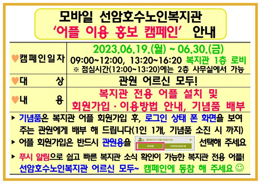 모바일 선암호수노인복지관 ‘어플 이용 홍보 캠페인’ 안내 페이지 정보 작성자 선암호수노인복지관 댓글 0건 조회Hit 883회 작성일Date 23-06-09 13:26 본문 선암호수노인복지관 관원 모두! 캠페인에 동참 바랍니다*^^* 목록 댓글목록 댓글목록 등록된 댓글이 없습니다.