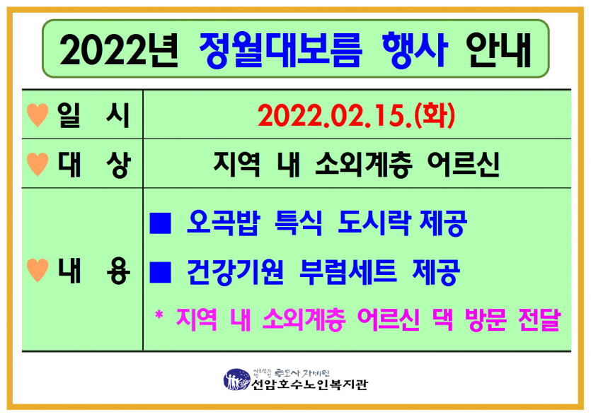 이에 따라 "2022년 정월대보름행사" 내용도 변경 되었습니다.