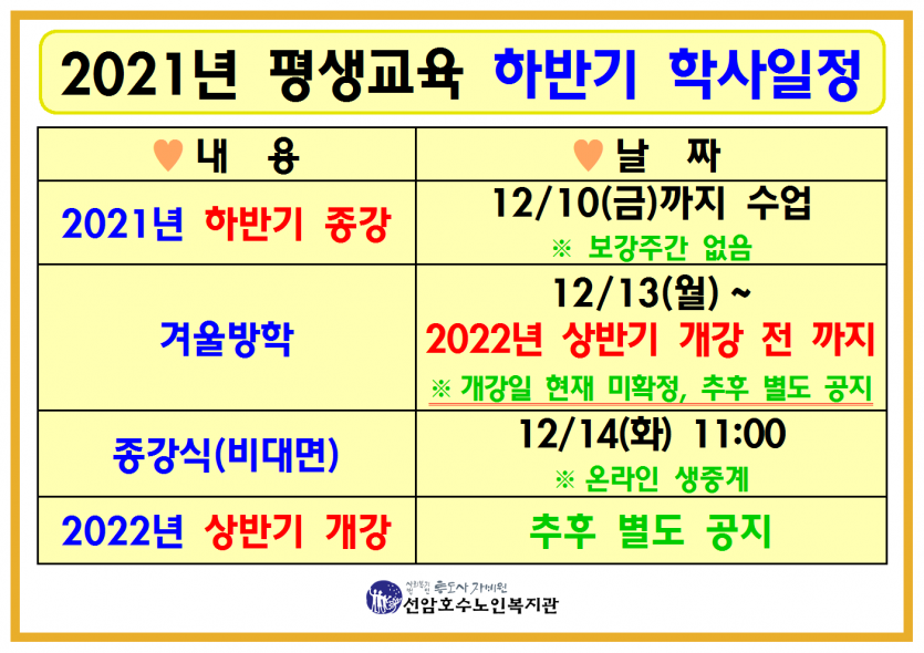 2021년 평생교육프로그램 하반기 학사일정(12/2일 일부내용 변경)