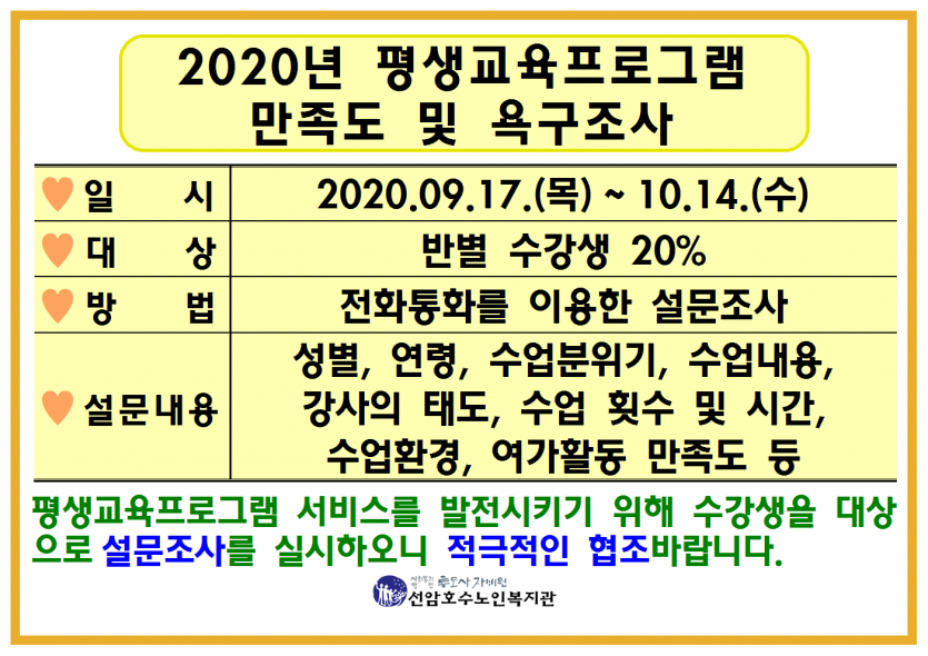2020년 평생교육프로그램 만족도 및 욕구조사 안내 페이지 정보 작성자 관리자 댓글 0건 조회Hit 774회 작성일Date 20-09-15 15:55 본문 2020년 평생교육프로그램 만족도 및 욕구조사 안내 목록 댓글목록 댓글목록 등록된 댓글이 없습니다.