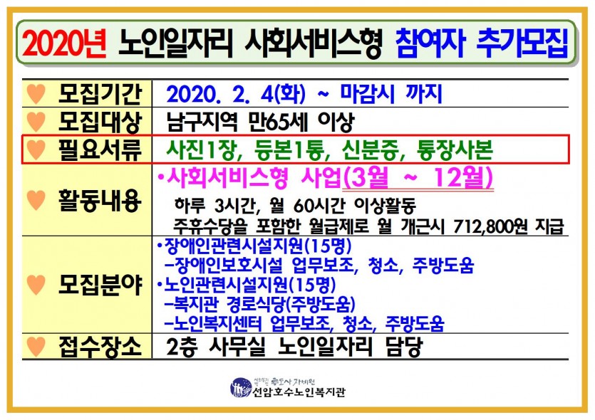 2020년 노인일자리 사회서비스형 참여자 추가모집 페이지 정보 작성자 관리자 댓글 0건 조회Hit 714회 작성일Date 20-02-04 10:28 본문 2020년 노인일자리 사회서비스형 참여자 추가모집 목록 댓글목록 댓글목록 등록된 댓글이 없습니다.