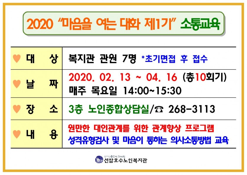 2020년 "마음을 여는 대화 제1기" 집단상담 프로그램 실시안내