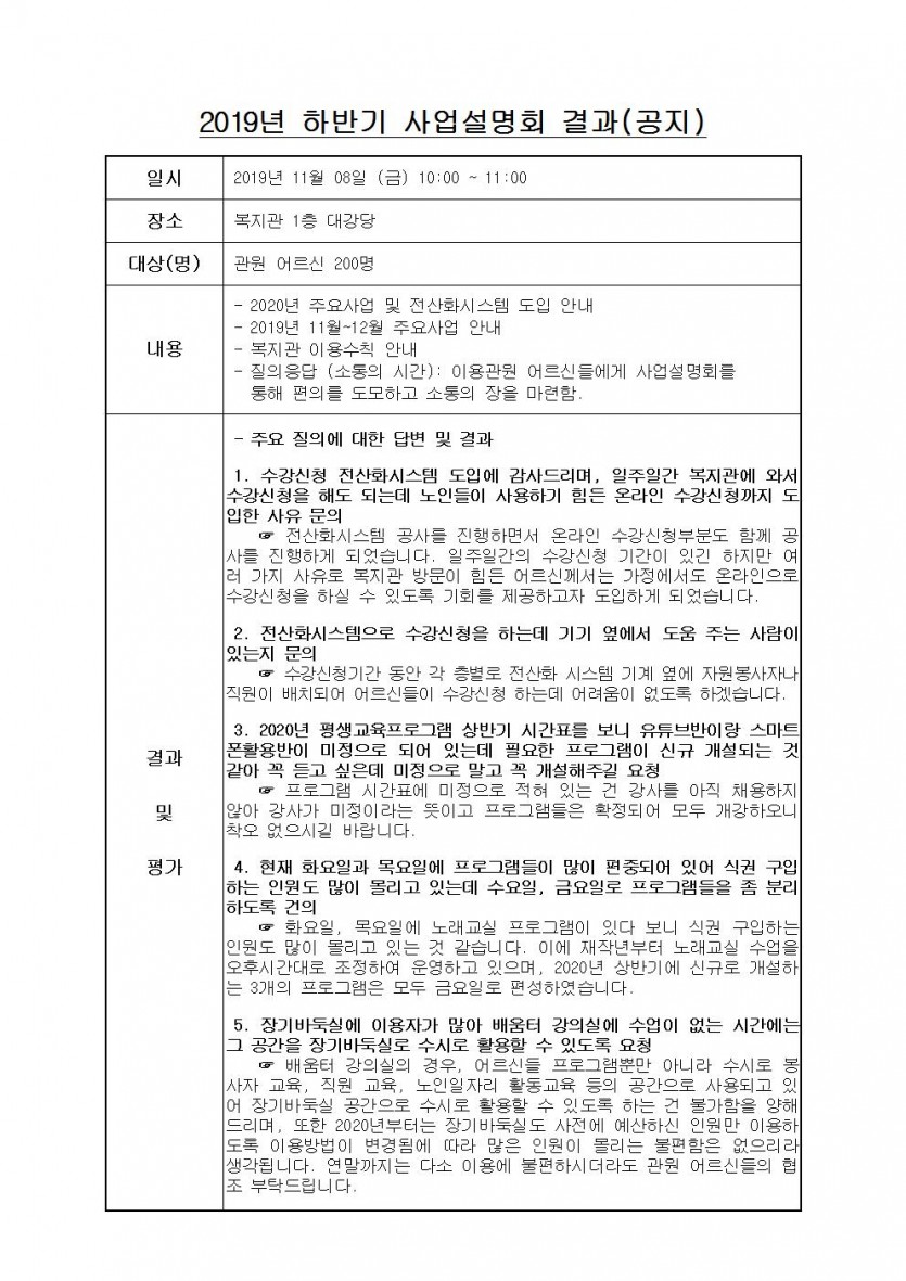 2019년 하반기 사업설명회 결과(공지) 페이지 정보 작성자 관리자 댓글 0건 조회Hit 614회 작성일Date 19-11-13 10:48 본문 2019년 하반기 사업설명회 결과(공지) 목록 댓글목록 댓글목록 등록된 댓글이 없습니다.