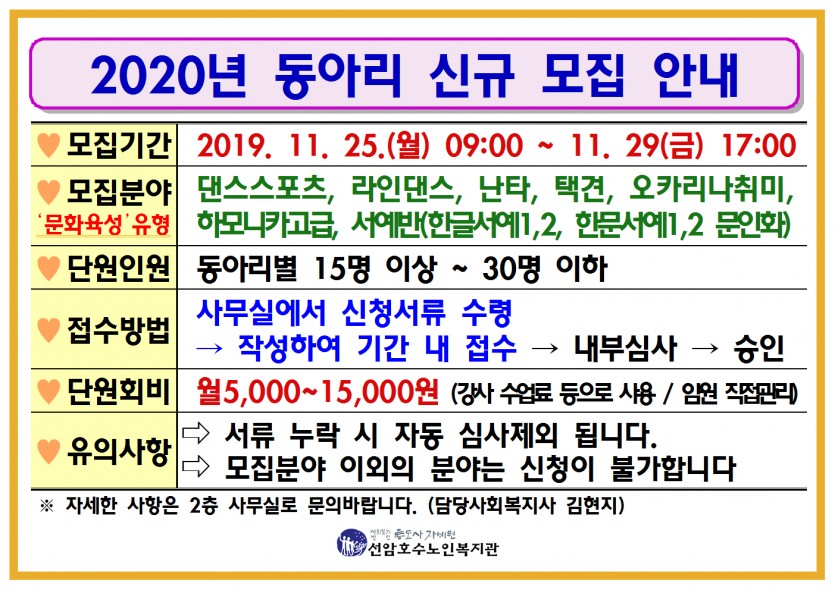 2020년 동아리 신규 모집 안내 페이지 정보 작성자 관리자 댓글 0건 조회Hit 785회 작성일Date 19-11-18 09:45 본문 2020년 동아리 신규 모집 안내 목록 댓글목록 댓글목록 등록된 댓글이 없습니다.