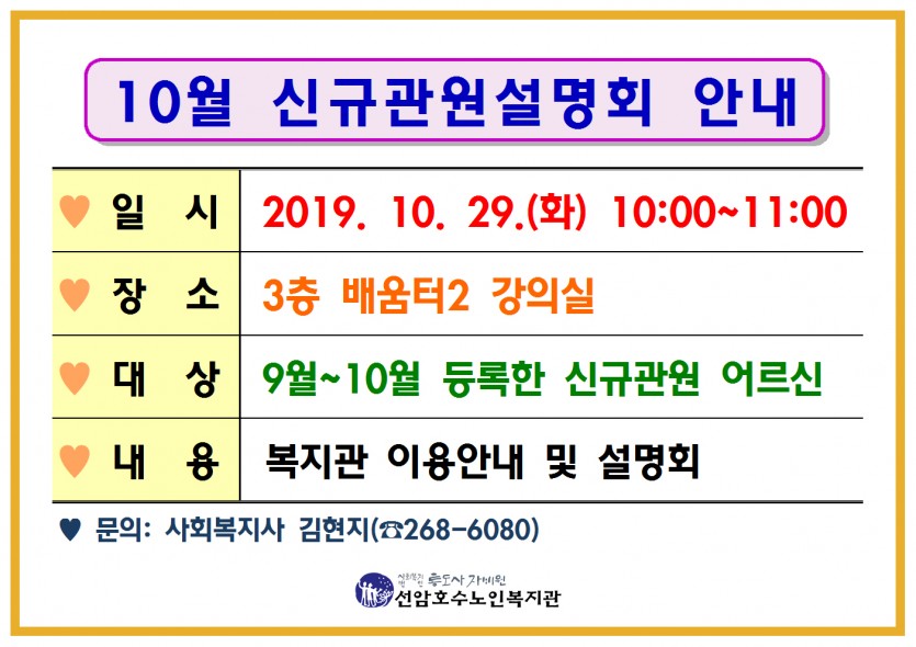 2019년 10월 신규관원설명회 안내 페이지 정보 작성자 관리자 댓글 0건 조회Hit 842회 작성일Date 19-10-23 13:05 본문 2019년 10월 신규관원설명회 안내 목록 댓글목록 댓글목록 등록된 댓글이 없습니다.