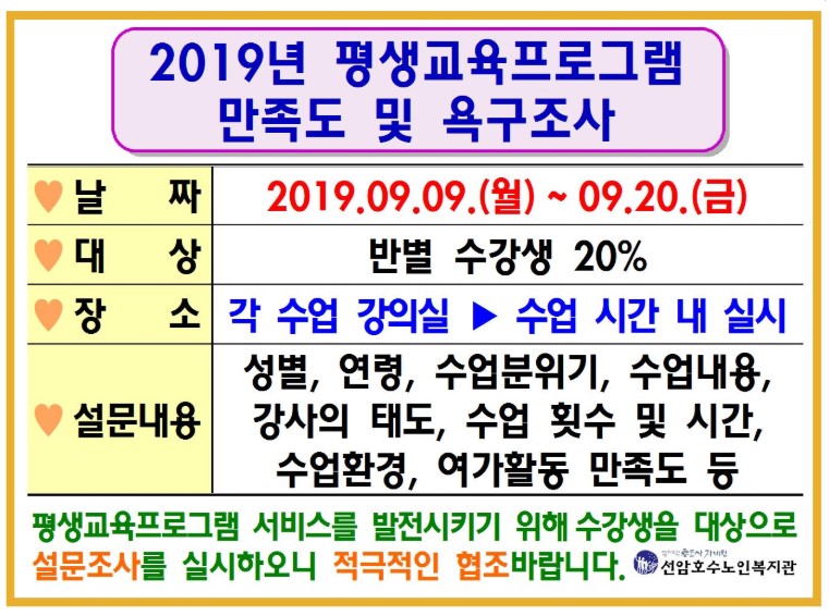 2019년 평생교육프로그램 만족도 및 욕구조사 [2019-09-06]
