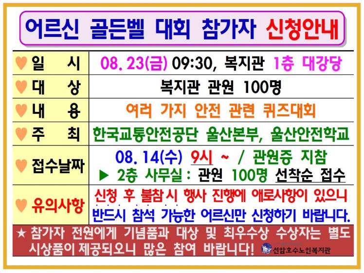 어르신 골든벨 대회 참가자 모집 [2019-08-06]