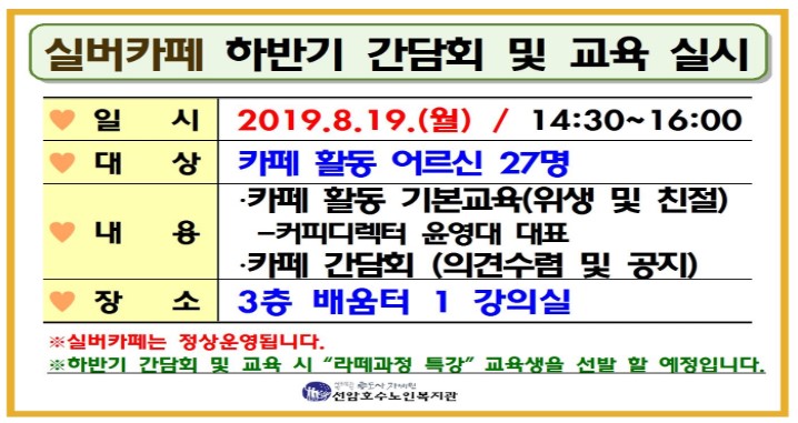 2019년 실버카페 하반기 참여자 간담회 및 교육 실시 [2019-08-12]