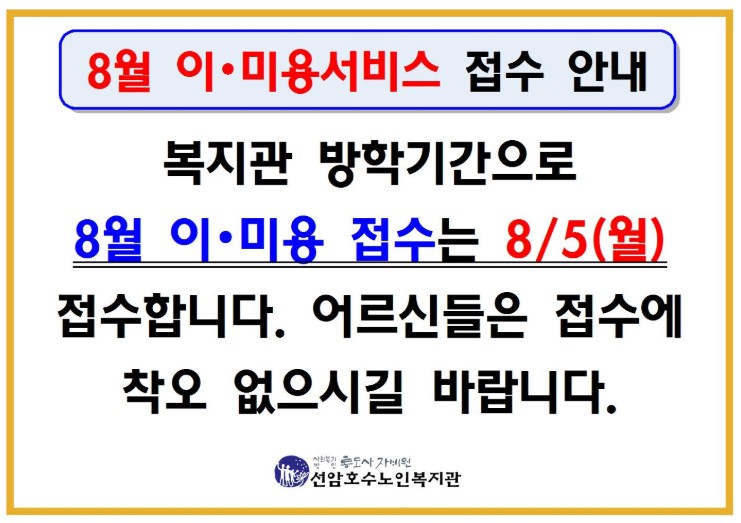 2019년 8월 이∙미용서비스 접수 안내 [2019-07-25]