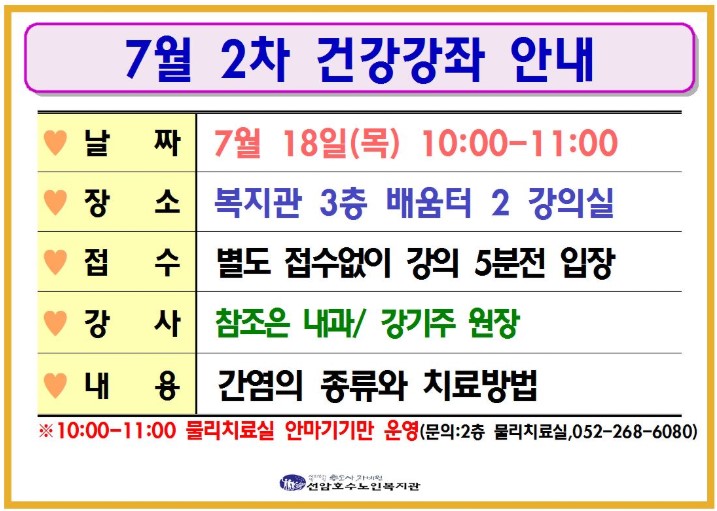 2019년 7월 2차 건강강좌 실시 안내 [2019-07-11]