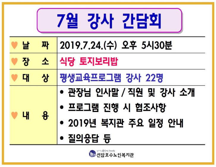 2019년 7월 평생교육프로그램 강사 간담회 [2019-07-12]